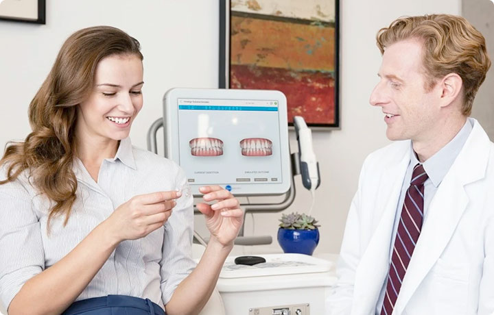 治療期間中は約1~3ヵ月に1回の頻度でご来院いただき、アライナーと歯の適合性やお口の状態をチェックし、次のアライナーをお渡しします。